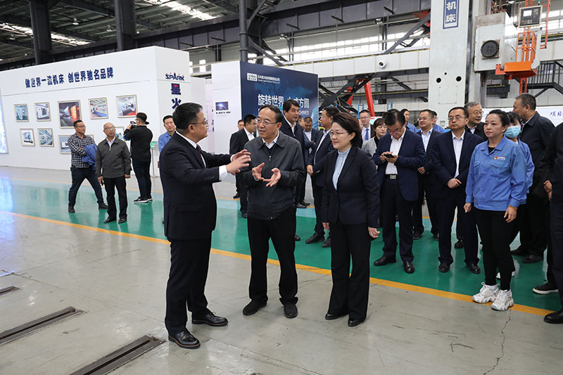 簽約儀式開始前,星火機(jī)床集團(tuán)公司董事長蔣保權(quán)陪同省、市領(lǐng)導(dǎo)參觀了公司主要產(chǎn)品并介紹了產(chǎn)品性能。