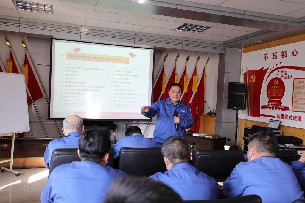 11月25日,星火機床公司黨委組織中層以上干部、黨支部書記、分會主席、青年骨干職工集體學習黨的二十大精神。集團公司黨委書記、董事長蔣保權結合習近平治國理政思想就堅持中國共產黨的領導、堅持人民至上、保持高昂的斗爭精神和堅定不移走高質量發展之路等方面內容講專題黨課。