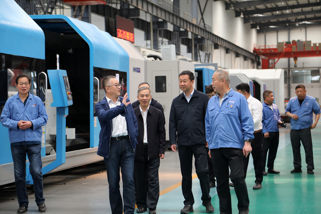 在裝配車間,趙錦銘向王虎中一行介紹了企業的歷史沿革、發展變化,匯報了企業科技創新、市場占有率,以及一季度工業產值、項目建設進展等。