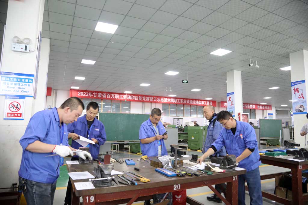 星火機床公司參加2023年甘肅省百萬職工勞動和技能競賽暨天水市第六屆職工職業(yè)技能運動會的共有55人,其中,參加由甘肅機電職業(yè)技術學院承辦的有“車、銑、電、焊、鉗”工等五個工種的27人,他們和來自11家單位的140多名技術工人同臺競技,并在比賽中展現(xiàn)出了高超的技術水平和自己的專業(yè)素養(yǎng)及實踐經(jīng)驗。由星火機床公司承辦的“起重裝卸機械操作工”的28人,已于9月9日在星火機床工業(yè)園完成比賽,星火機床公司和鍛壓公司共42名隊員參加了此項比賽,比賽秉持“公平競賽、文明參賽、積極比賽”的宗旨,賽出了水平,賽出了風尚,展現(xiàn)了“吃苦耐勞、勇于創(chuàng)新、行者無疆”的精神,獲得了技能競技和精神文明的雙豐收。