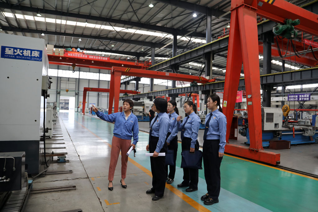 集團公司黨群工作部部長蔡建欣陪同楊芳一行參觀了企業工業園裝配車間生產現場,介紹了企業的生產經營情況,就生產經營中遇到的法制安全問題與楊芳進行了交流。蔡建欣介紹說,星火的發展離不開檢察機關的法制護航。這幾年,檢察機關通過各種方式對企業進行法治幫扶,為企業保駕護航,營商環境持續向好,生產經營主要指標不斷增長,呈現良好發展勢頭。