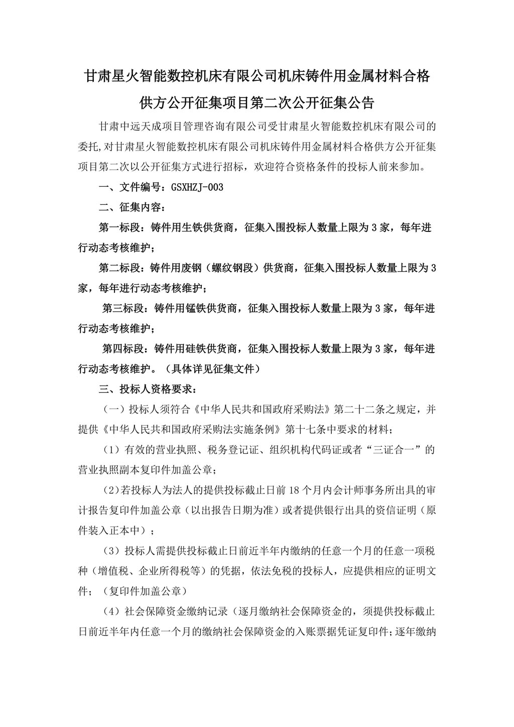 甘肅星火智能數(shù)控機(jī)床有限公司機(jī)床鑄件用金屬材料合格供方公開(kāi)征集項(xiàng)目第二次公開(kāi)征集公告
